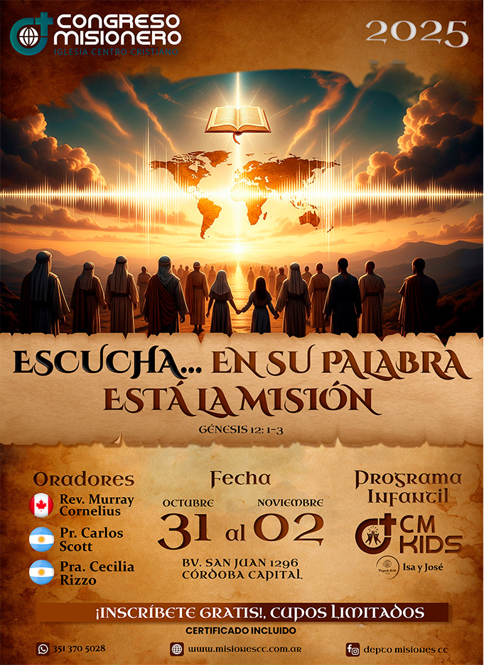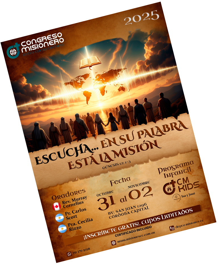 En este Congreso Misionero 2025 y CMKids 2025, podremos vivenciar a través de prestigiosos Oradores, como desde el Génesis al Apocalipsis hombres y mujeres, como Samuel y Lidia, ESCUCHARON al Señor, y actuaron en consecuencia con perspectiva en la Salvación a todo pueblo y nación.